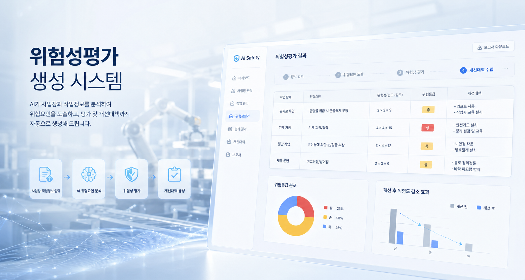 AI 가 초안을, 안전관리자가 판단을 — 명확한 분업.